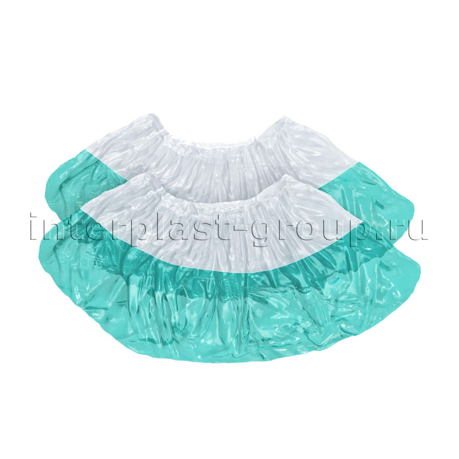 Бахилы бело-бирюзовые 1000 шт (500 пар), 48 мкм, двойная подошва, с одной резинкой, Эконом+