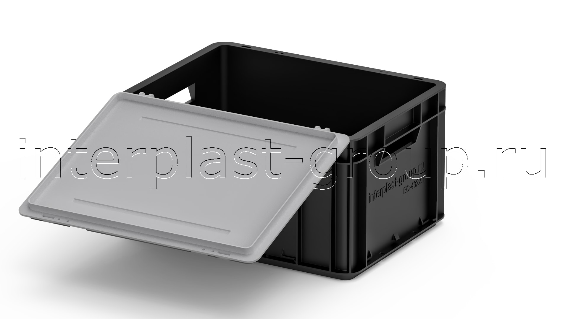 Евроконтейнер открытые ручки/сплошное дно (черный), 400x300x220 мм